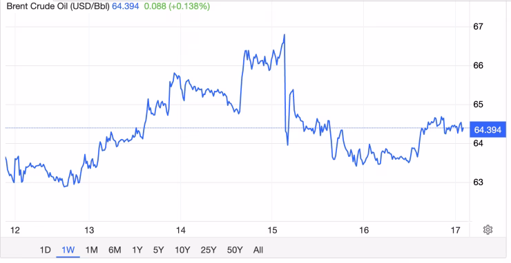 Theo dữ liệu của Trading Economics, giá dầu WTI giao ngay (spot) đạt 59,7 USD/thùng, tăng 0,6 USD (khoảng 1%). Giá Brent cũng tăng tương tự, lên 64,4 USD/thùng, tăng 1% so với ngày hôm qua. Trung bình, giá dầu thô trong tháng 1 đã tăng từ 6,8% đến 7,7% so với tháng trước, dù vẫn còn giảm 20‑22% so với cùng kỳ năm ngoái.