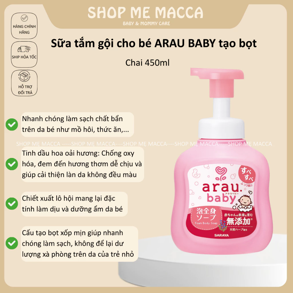 🔥 Sữa tắm gội cho bé Arau Baby tạo bọt chai 450ml đang giảm giá!
