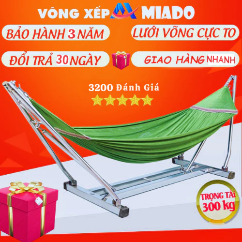 Võng xếp inox MIADO khung vuông cỡ lớn chịu tải 300kg gấp gọn tiện lợi bảo hành 3 năm là một lựa chọn tuyệt vời cho không gian nhỏ tại nhà. Sản phẩm này có nhiều ưu điểm nổi bật, bao gồm: