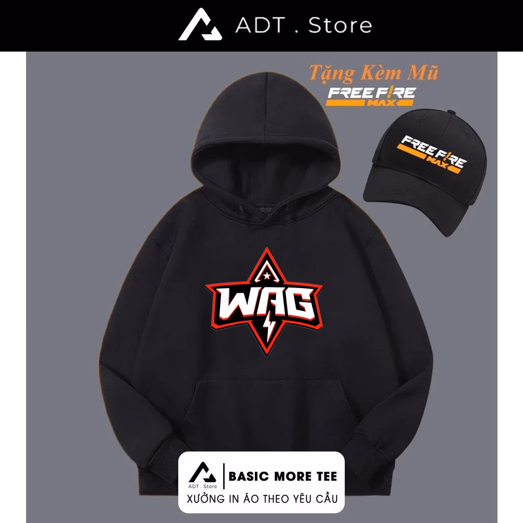 🔥 [ TẶNG KÈM NÓN FF] Áo Hoodie Free Fire Team Wag Peo màu đen và trắng – Hàng đẹp đang giảm giá!