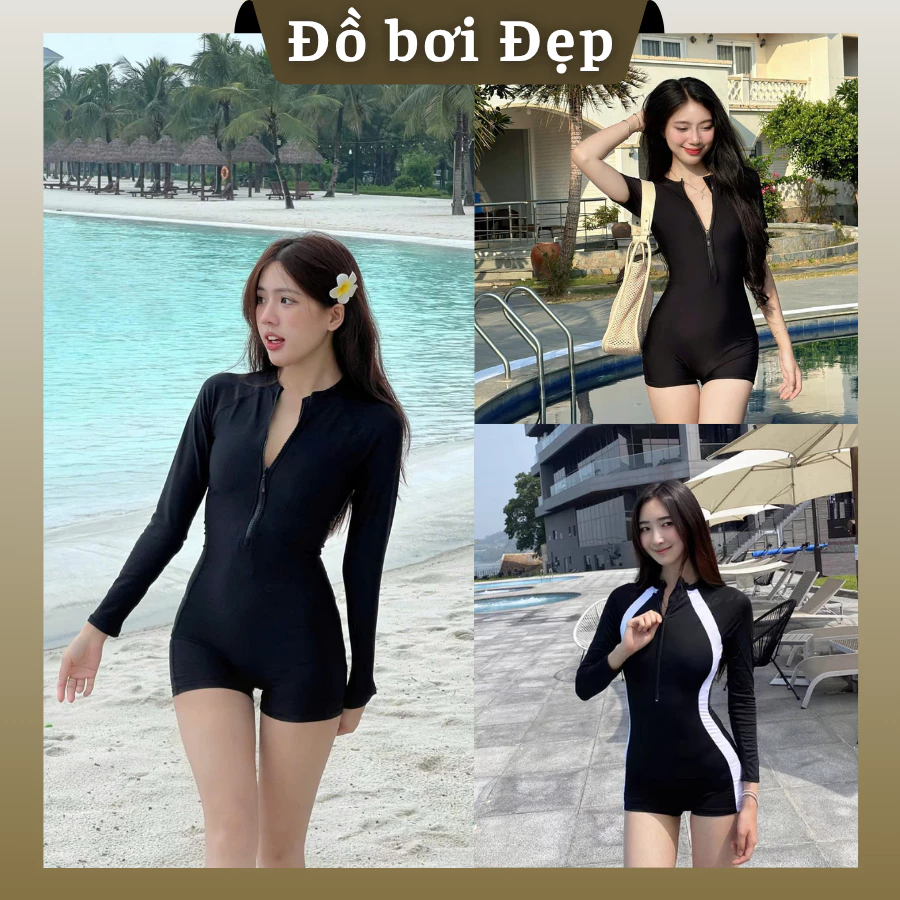 🔥 Đồ bơi nữ kín đáo bikini liền thân quần đùi form Short có khóa Zip kéo màu đen tay dài và tay ngắn Sport Light 041 đang giảm giá!