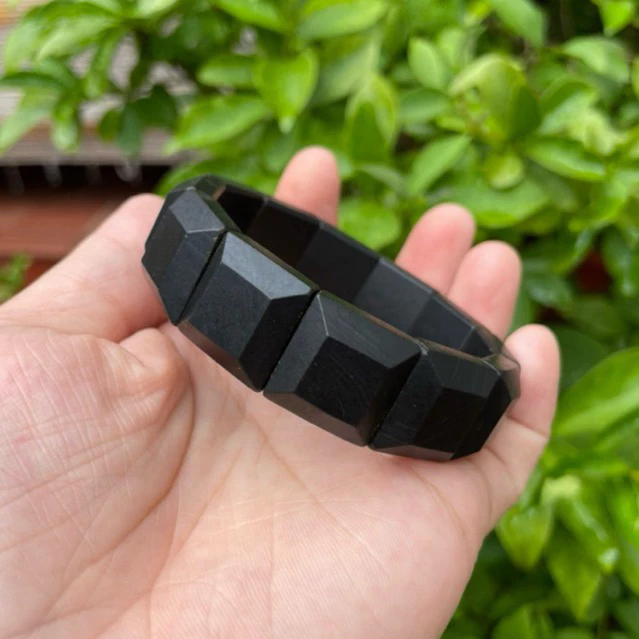 Vòng Tay Gỗ Mun Sừng Khánh Hoà Bản Vuông 18x18mm Màu Đen Tuyền cho Nam và Nữ