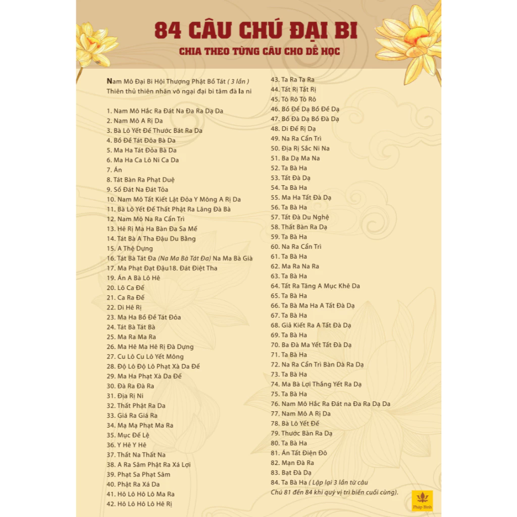🔥 Tờ Chú Đại Bi 84 Câu Và Lời Khấn Nguyện Hằng Ngày. Khổ A4, Cán Nilong Chống Nước – Pháp Bình đang giảm giá!